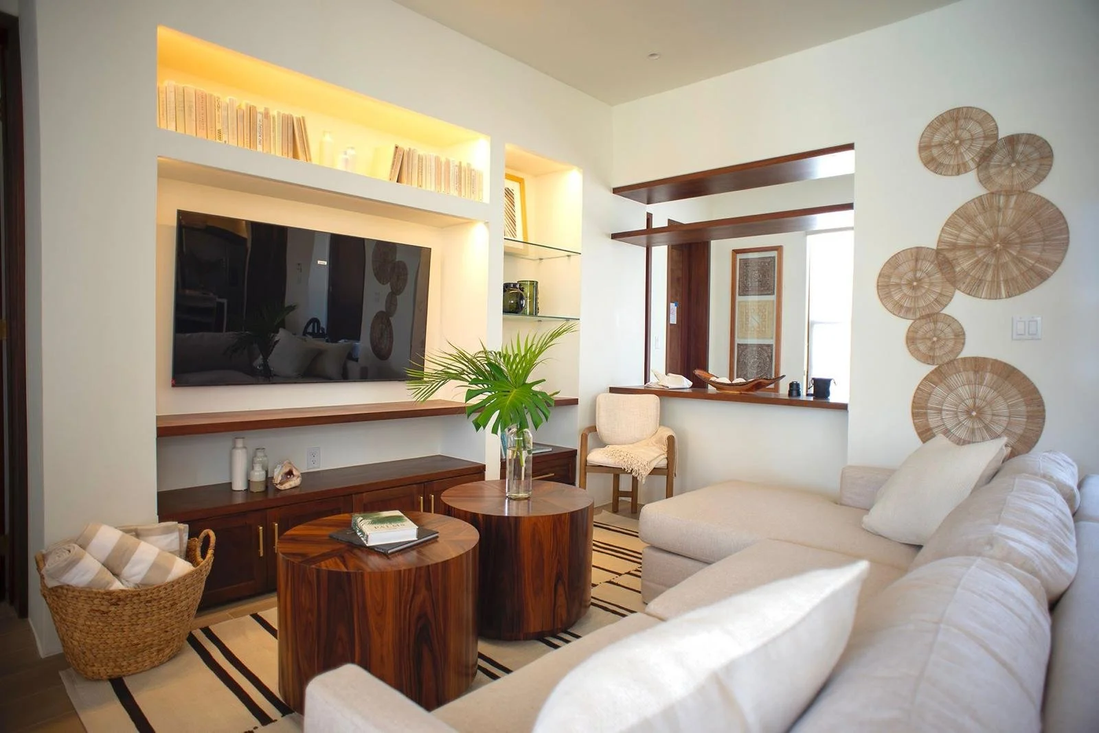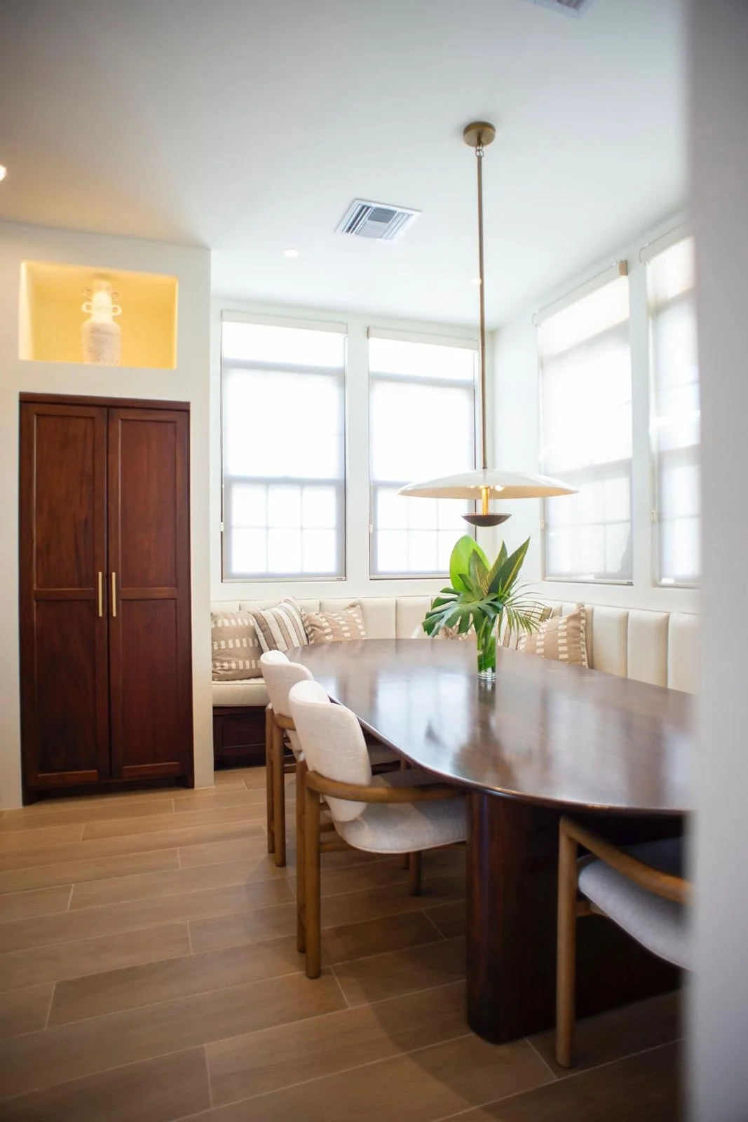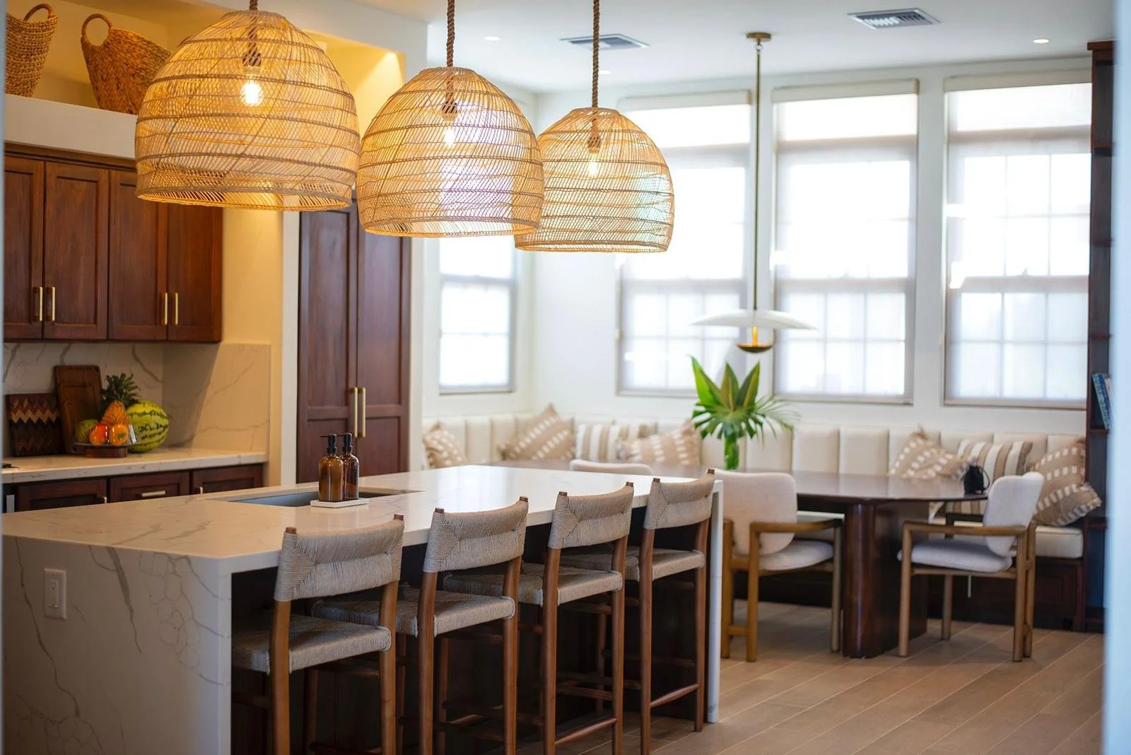 A soft color pallet with durable fabrics and materials that will make all guests feel comfortable and help bring the outside in.